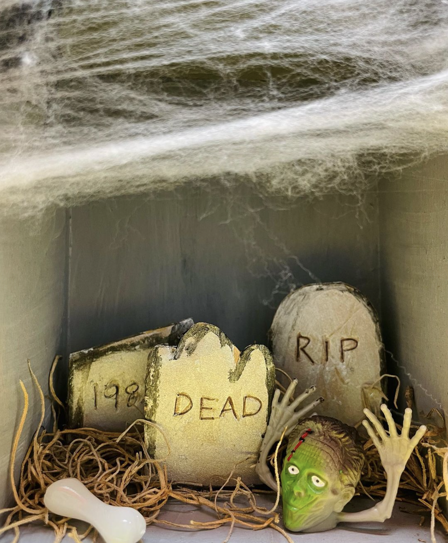 Includes wooden haunted castle and all materials, decorations, ghouls, goblins, skeletons, wood coffin, and more!
